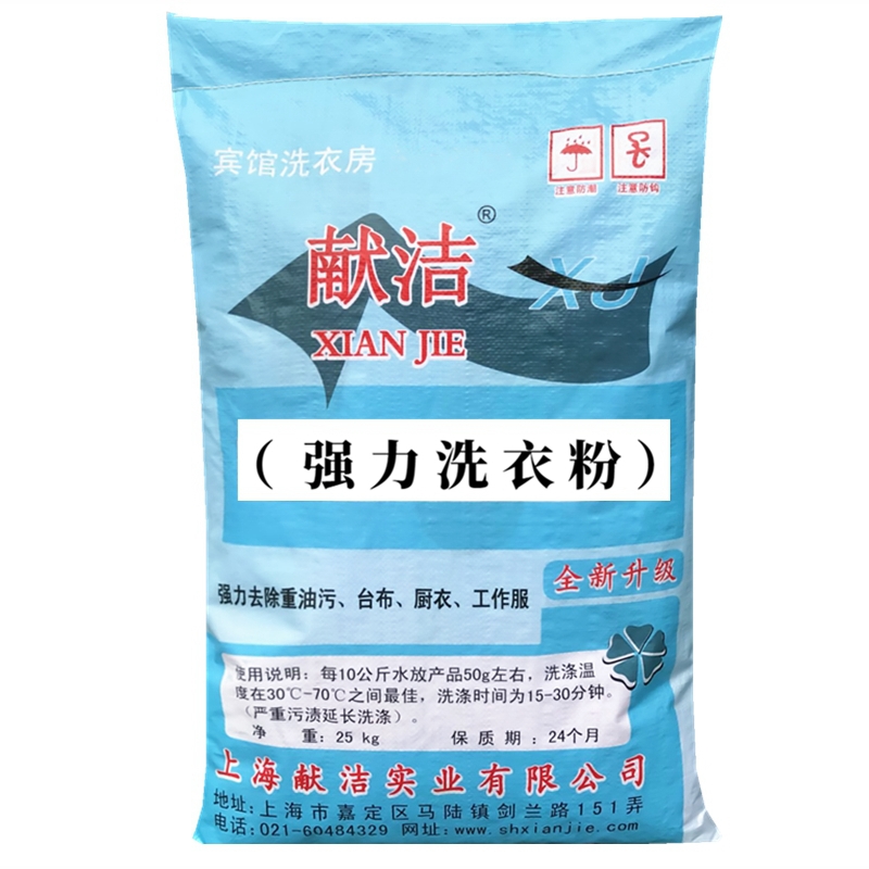 上海献洁实业有限公司,开创于2008年,是以“为客户节约生产成本,为客户创造价值为宗旨,双赢共存”为使命的一家专注于商用洗涤用品与家用清洁全品类研发、生产、设计、销售于一体的综合性企业,为洗涤行业提供了高品质洗涤产品,主要产品有强力洗衣粉、增白洗衣粉、通用洗衣粉、彩漂粉、油污乳化剂、织物柔顺剂、油污净等等。连续年销售量高于行业水平,产品远销国外及中国各地。